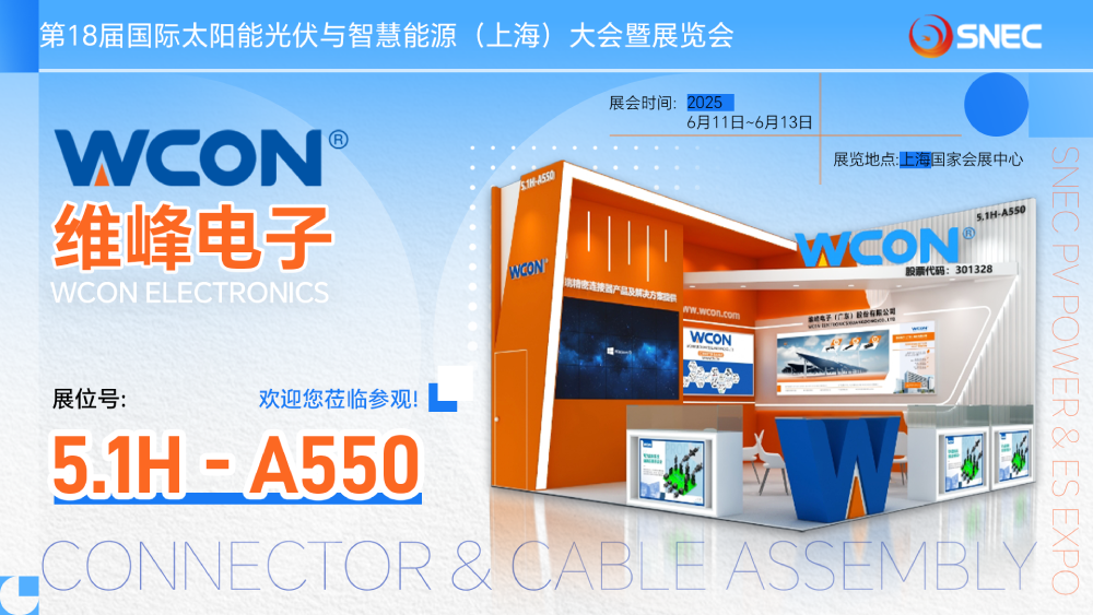 在本次展會(huì)上,WCON 將展示一系列涵蓋廣泛類(lèi)型和規(guī)格的能量連接器。我們誠(chéng)摯地邀請(qǐng)您蒞臨我們位于上海國(guó)家會(huì)展中心的5.1H-A550展位,共同探討連接技術(shù)的新趨勢(shì)。
